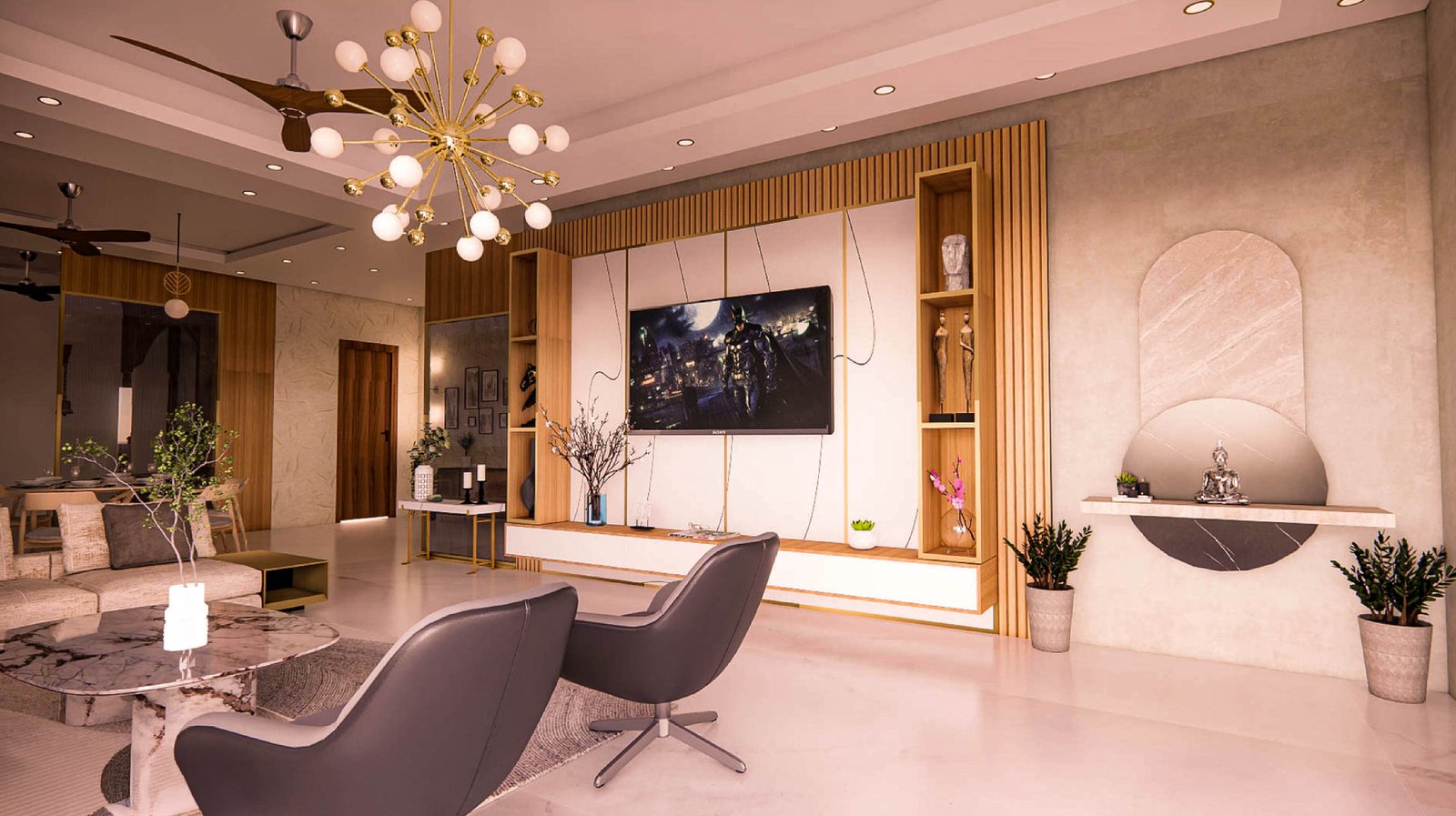 We designed a 2,800 sqft penthouse located in Whitefield for a client looking for interiors that used more light materials, with the main living area space planned in a manner that allowed for transforming the spaces as the people in the home changed. A family that entertained relatives frequently for multiple occasions, the client's expectations for each room was clearly defined allowing us to design a home where each room had character and yet came together as a cohesive whole.